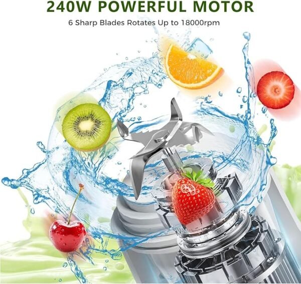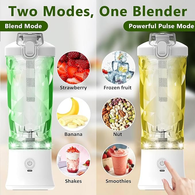 - Tragbares Design ermöglicht die Zubereitung von Smoothies und Shakes überall und jederzeit.