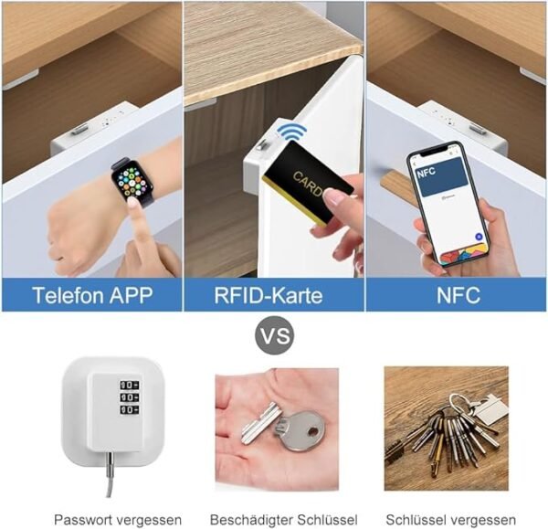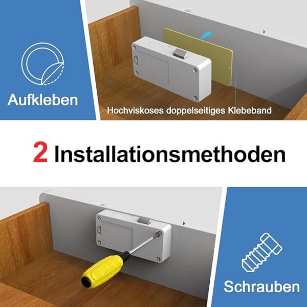 - Verstecktes Design: Die unauffällige Installation im Inneren des Schranks oder der Schublade erhöht die Sicherheit und Ästhetik.